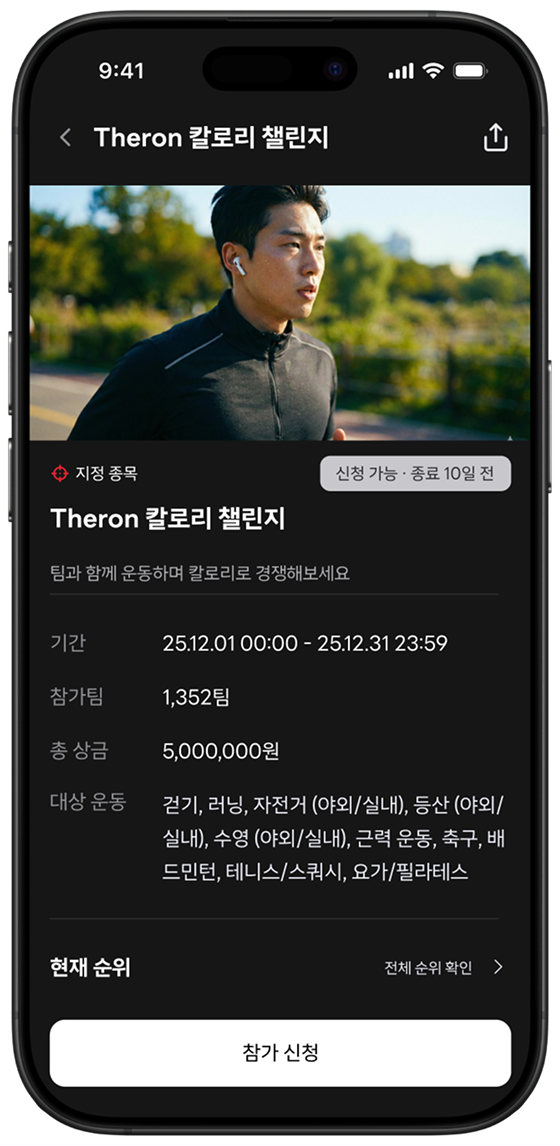 동호회, 친구, 가족과 함께 팀을 만들고선의의 경쟁 속에서 챌린지로 더 많은 보상을 획득하세요.
